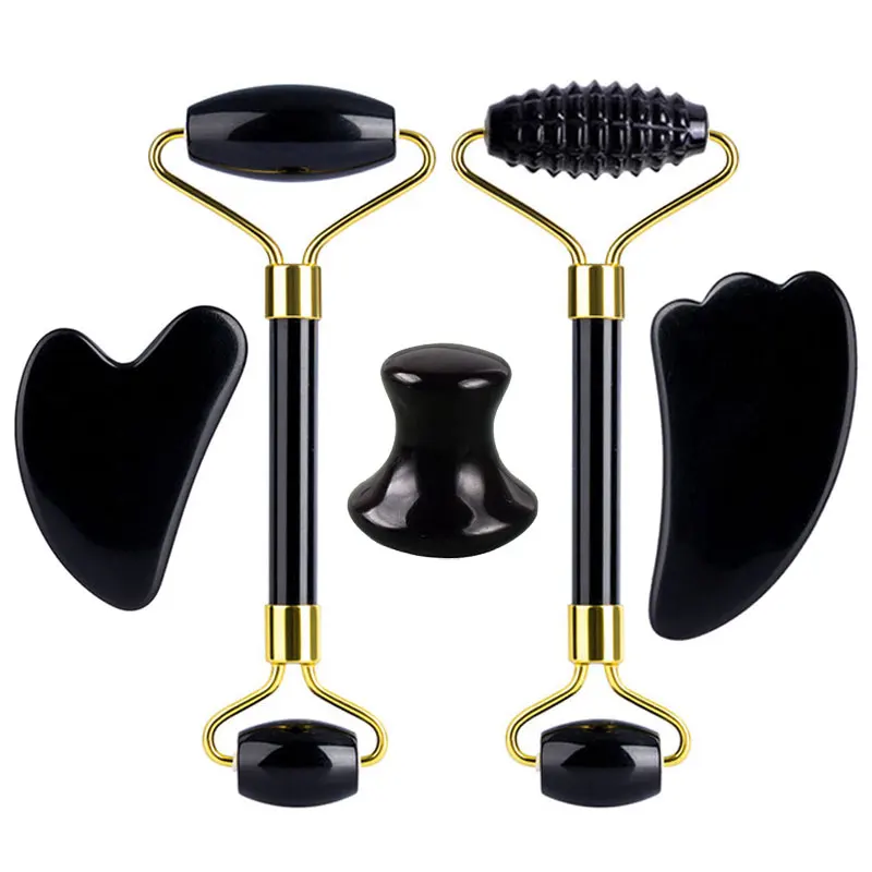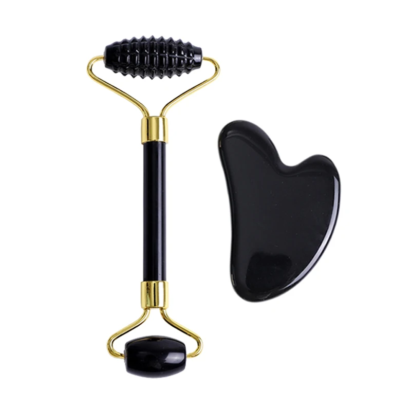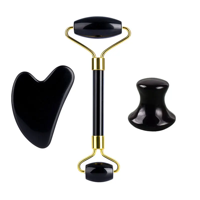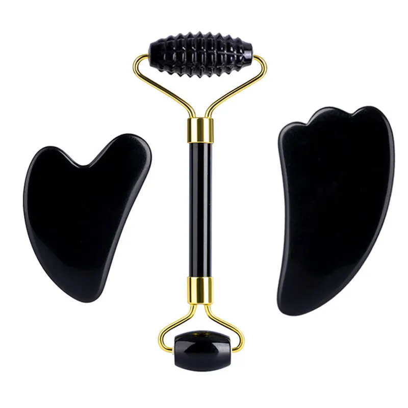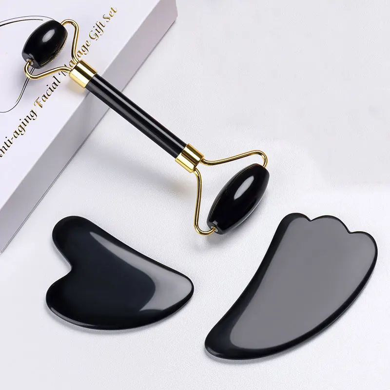Натуральный обсидиан ролик для массажа лица Gua Sha скребок гуашь в наборе камень для лица нефритовый ролик-массажер гуашь скребок массажер для лица
