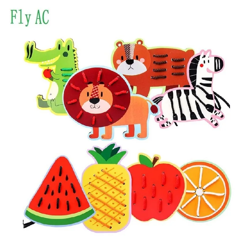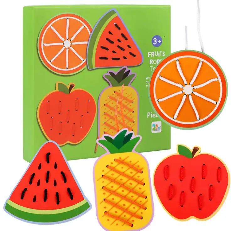 Игрушка Fly AC-деревянная шнуровка, игрушки для нарезания фруктов, игрушки для путешествий, игра для раннего обучения по системе Монтессори, хорошая моторика, развивающий подарок