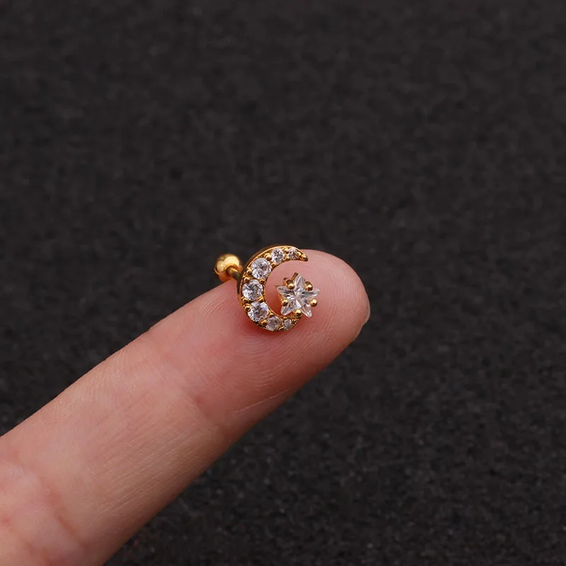 1 шт. Нержавеющаясталь спиральный для хряща серьги Cz луна и звезды...