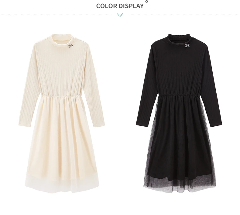 Платье женское трикотажное из сетчатой ткани, с длинным рукавом и бантом