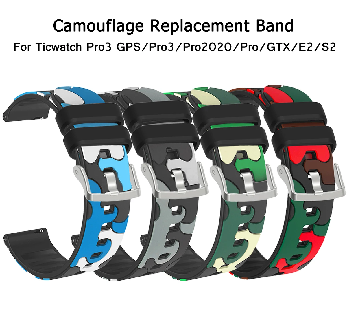 Ремешок Камуфляжный силиконовый для Ticwatch Pro 3 Ultra GPS, браслет для Ticwatch Pro X E2 S2 GTX 2020 4GLTE
