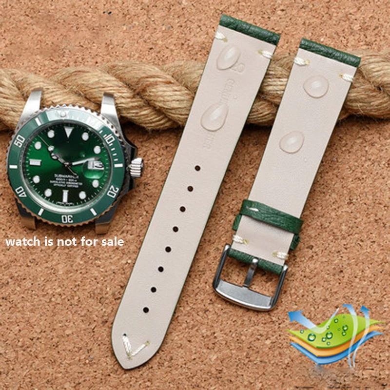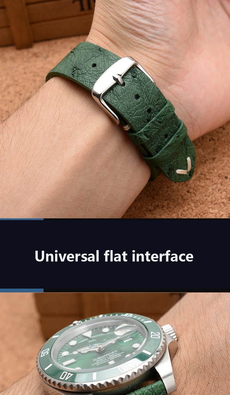 Ремешок для часов из страусиной кожи, ультратонкий мягкий черный и зеленый браслет ручной работы для water ghost, 18 20 22 м