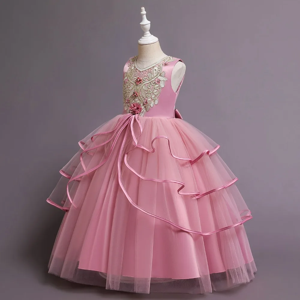 Платье для девочки в цветочек, рождественское кружевное платье принцессы для девочки, подружки невесты, на возраст 8, 12, 14 лет