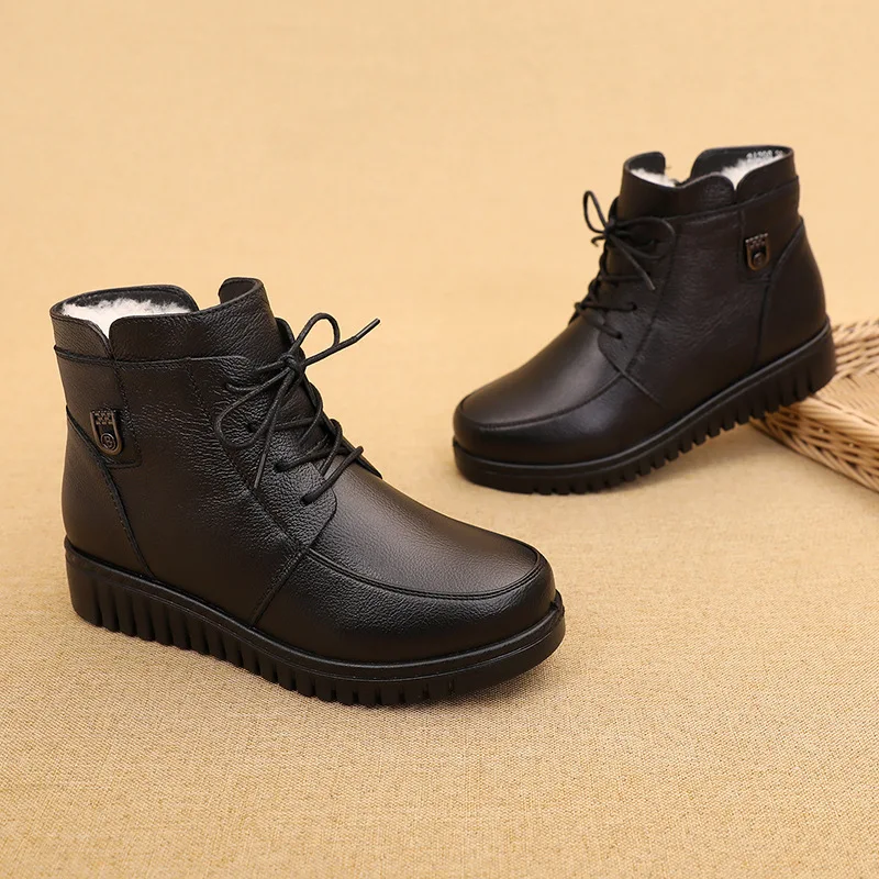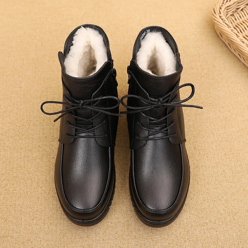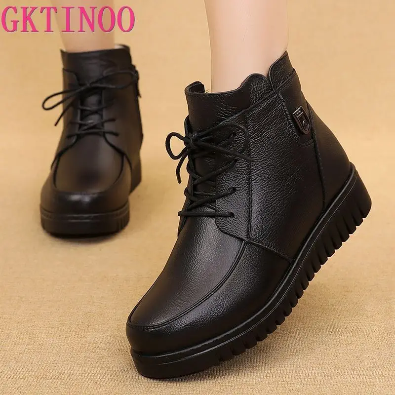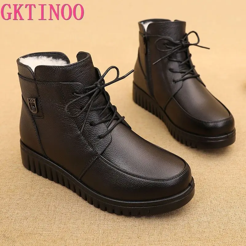 GKTINOO2022 г.; Женские зимние ботинки; Зимние ботильоны на плоской подошве; Женская теплая обувь на платформе; Ботинки из натуральной кожи на толстом меху