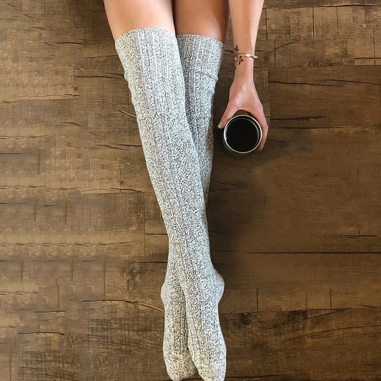 Однотонные женские носки, чулки, теплые чулки выше колена, Длинные хлопковые чулки medias, сексуальные чулки medias