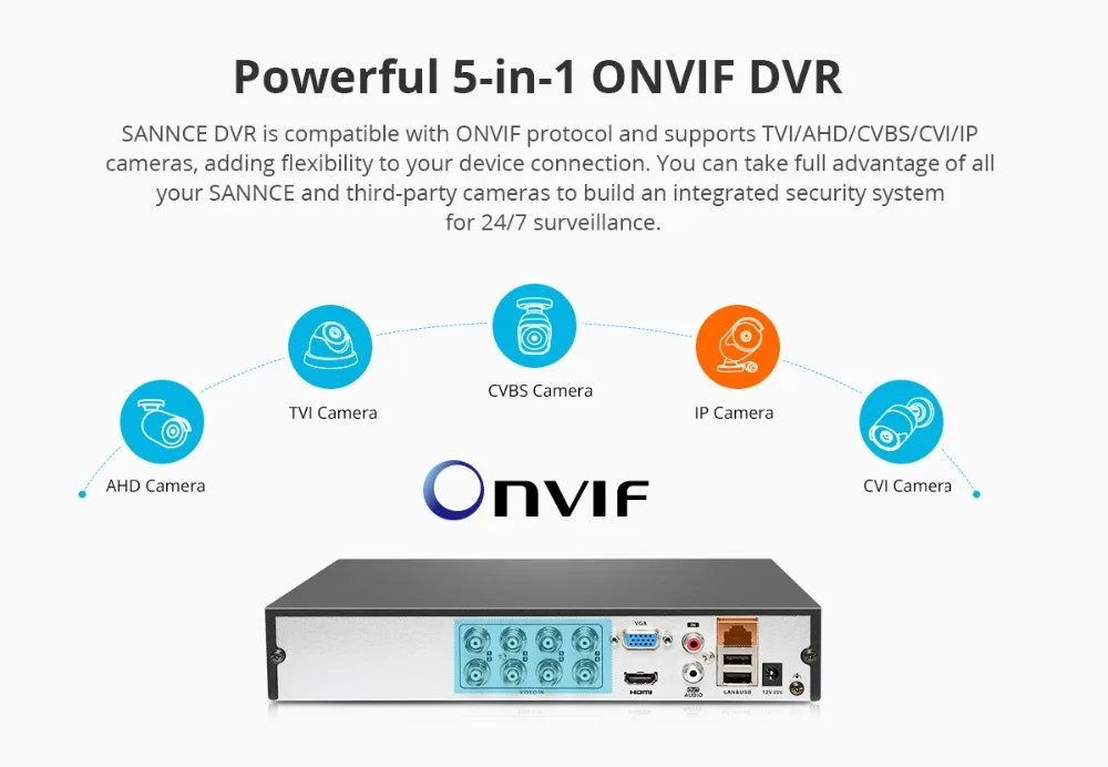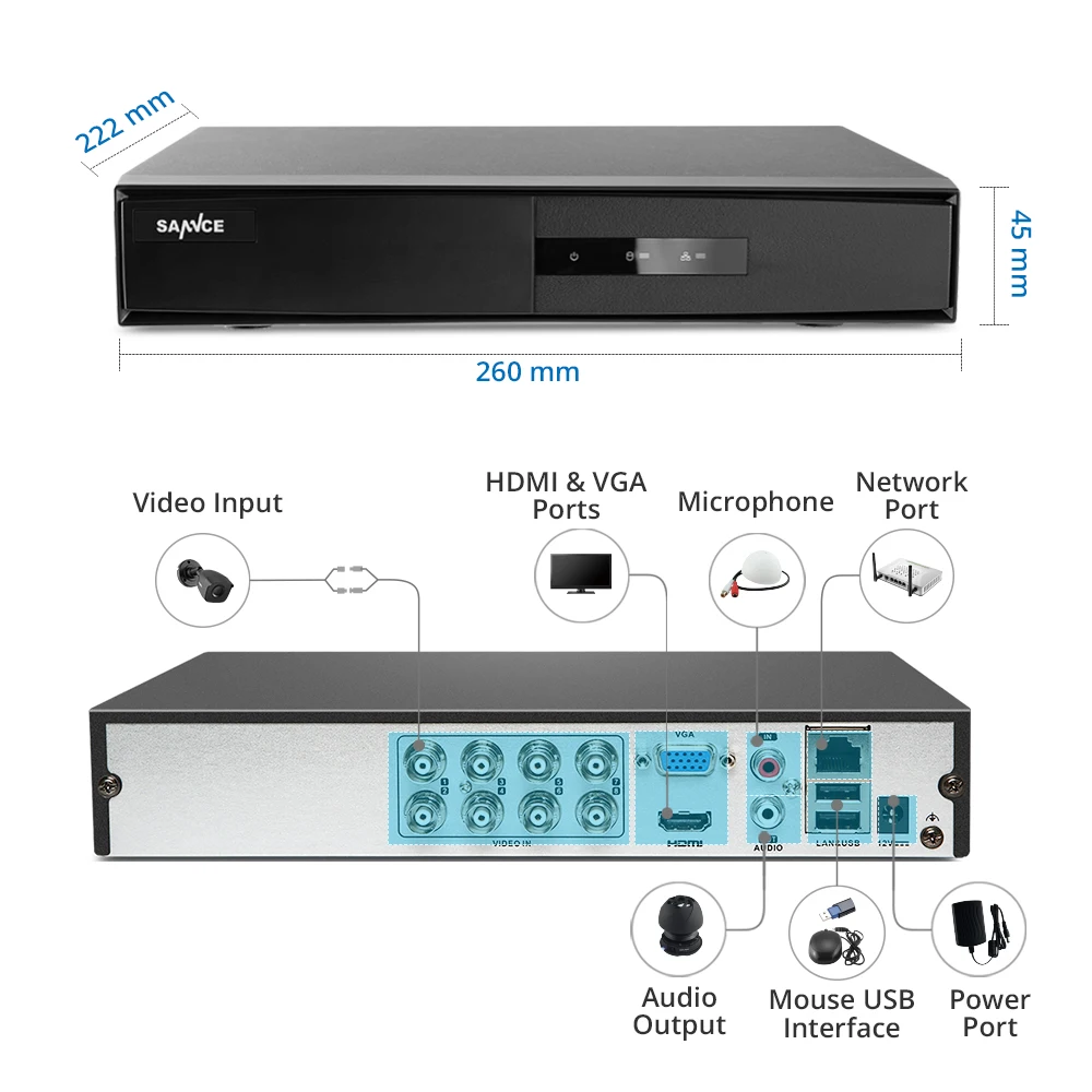 SANNCE 4-канальный 8-канальный TVI DVR AHD 5-в-1 1080N CCTV DVR 4CH...