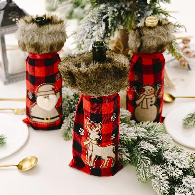 Рождественские Чехлы для винных бутылок, чехол для винных бутылок с...