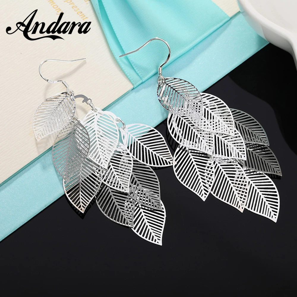Женские серьги из серебра 925 пробы, с подвесками в виде листьев