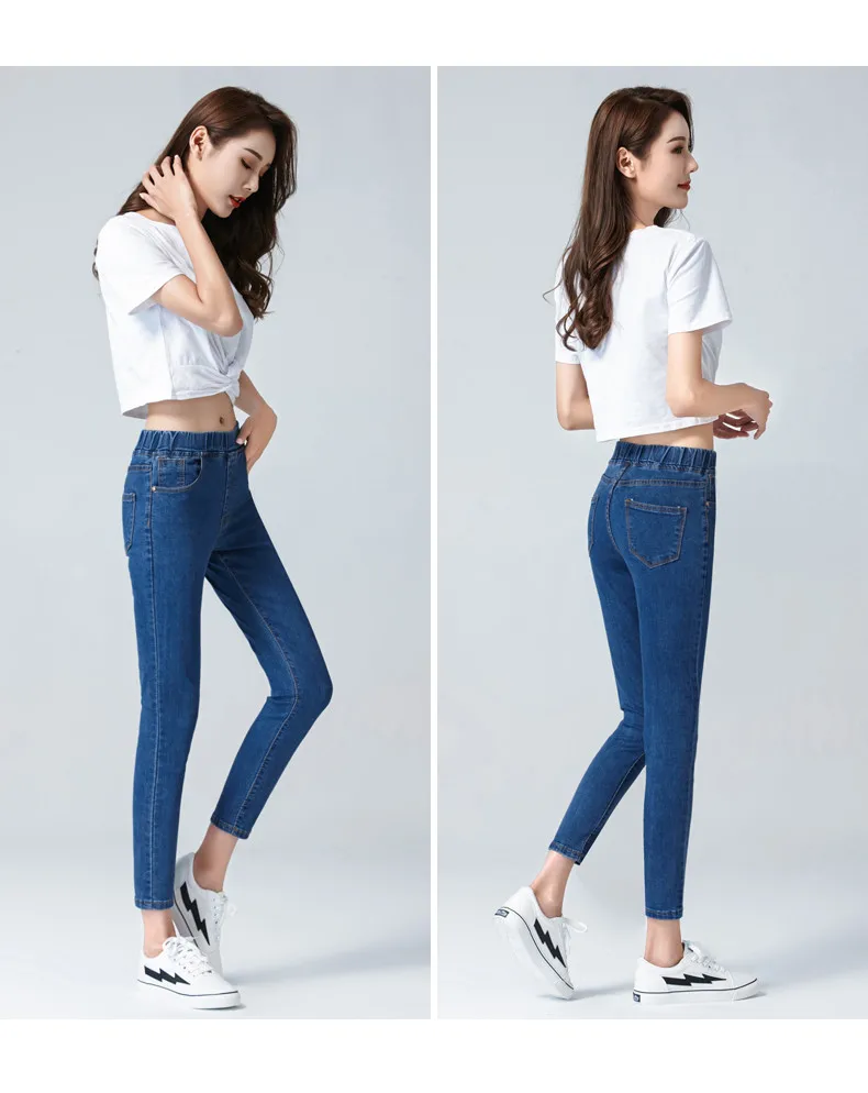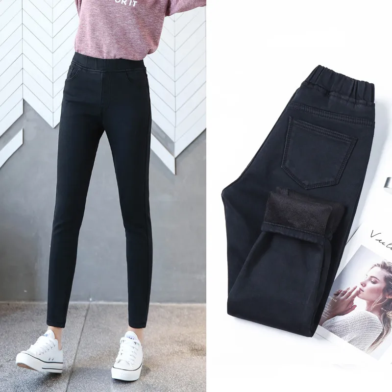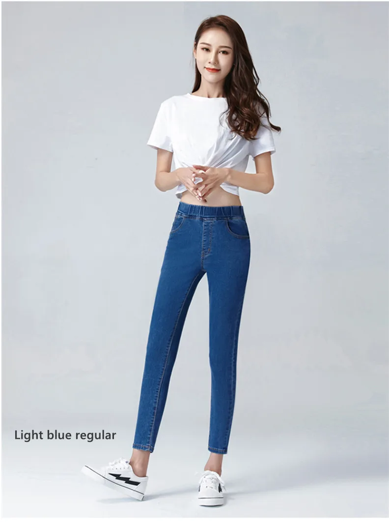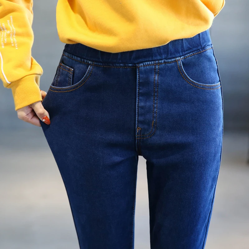Джинсы S-5XL женские, плотные эластичные с высокой талией