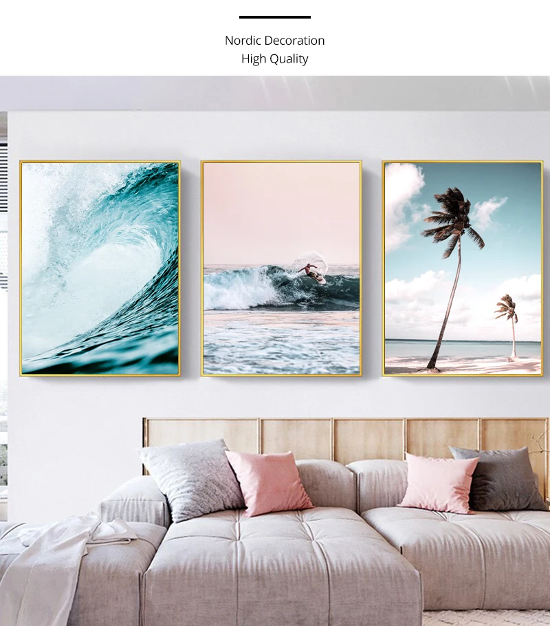Спокойный и бесконечный океан, морской холст, скандинавские плакаты...