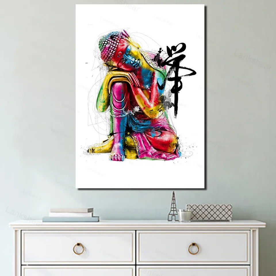 Красочная абстрактная статуя Будды, Картина на холсте, буддистские ...