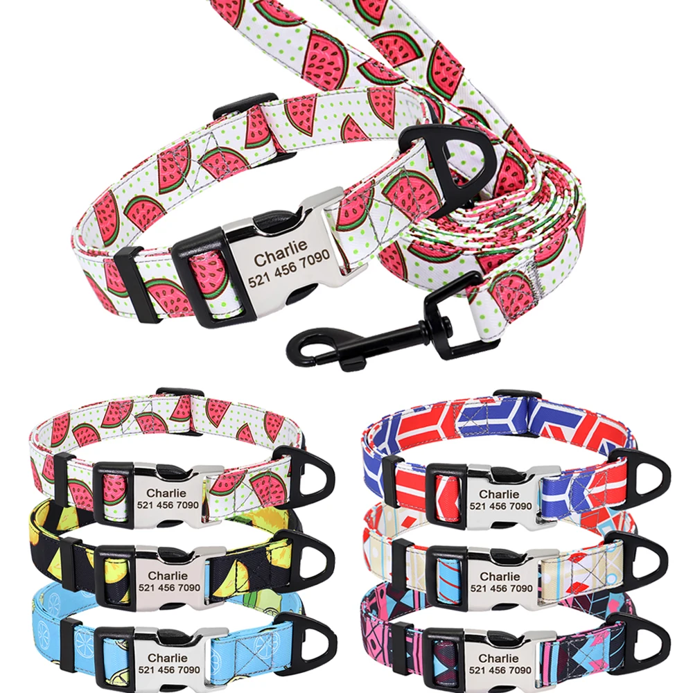 Нейлоновый ошейник для собак с фруктовым принтом, милый индивидуальный поводок с выгравированным именем, для питбуля малого, среднего и крупного размера