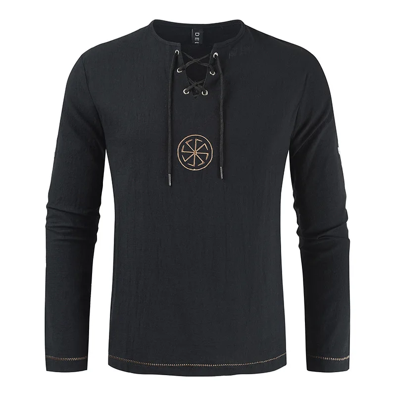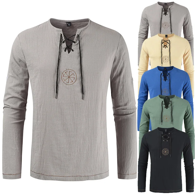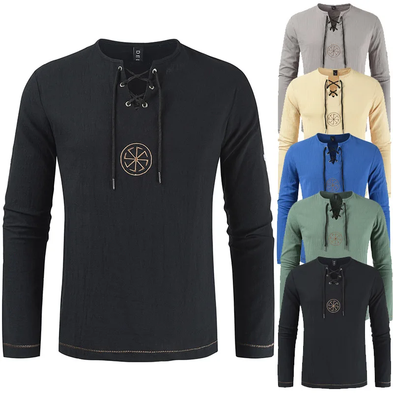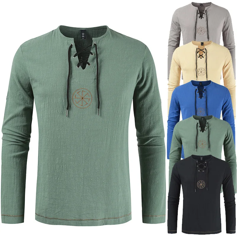 Мужская рубашка с вышивкой в древнеславянском стиле, Средневековый Ренессанс, однотонный Повседневный Удобный Универсальный костюм для косплея, 2020