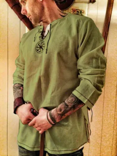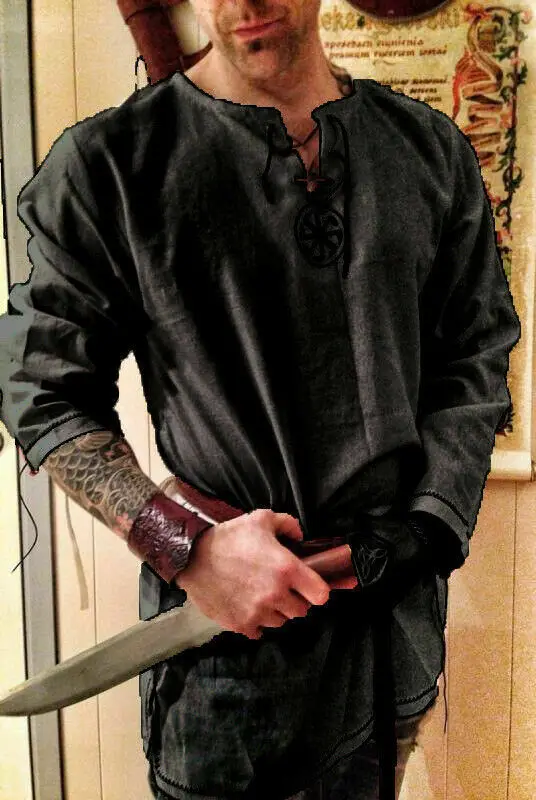 Рубашка мужская, средневековый боевой воин, из льна, с вышивкой