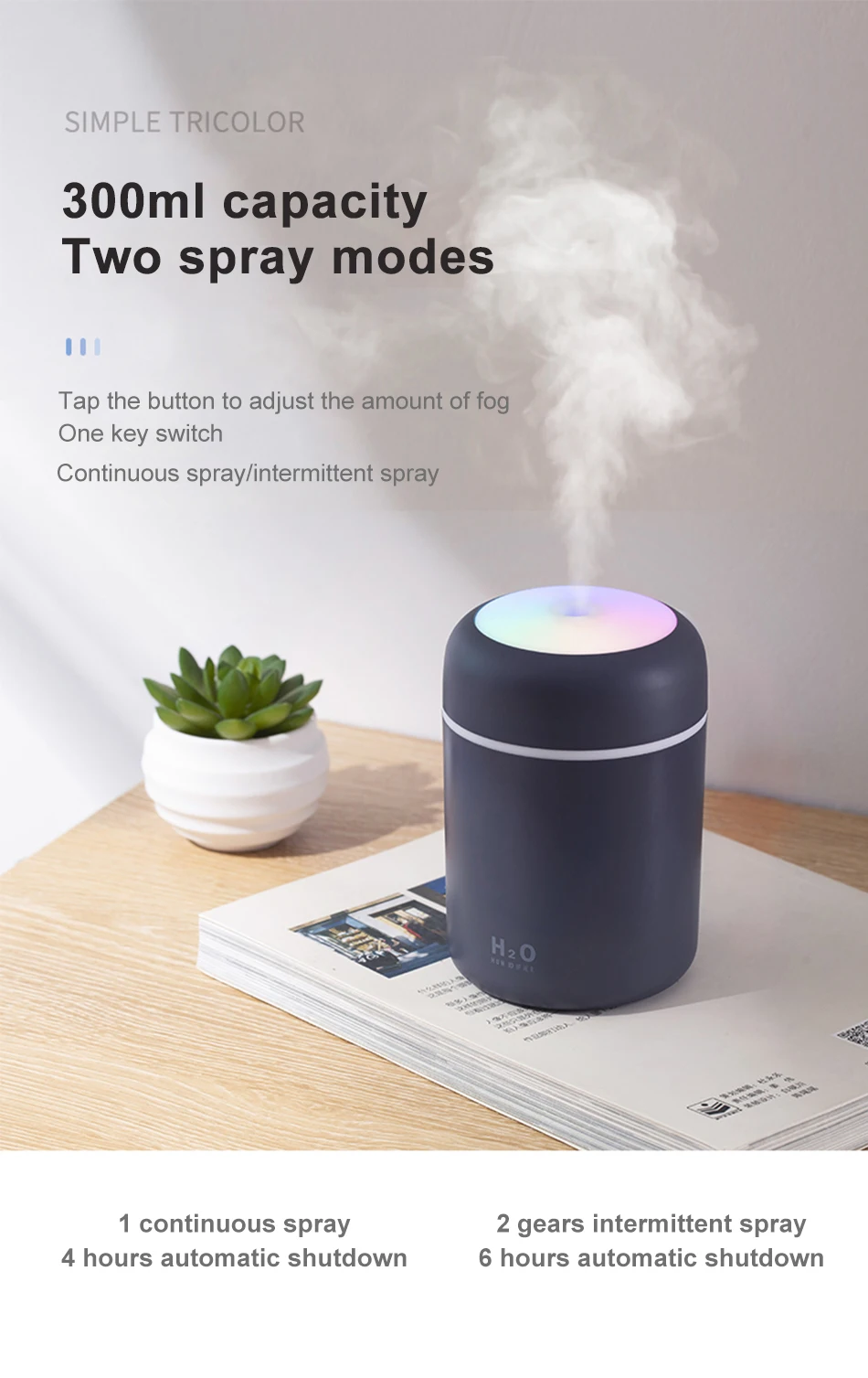 Ультразвуковой распылитель-увлажнитель воздуха, 300 мл, Usb