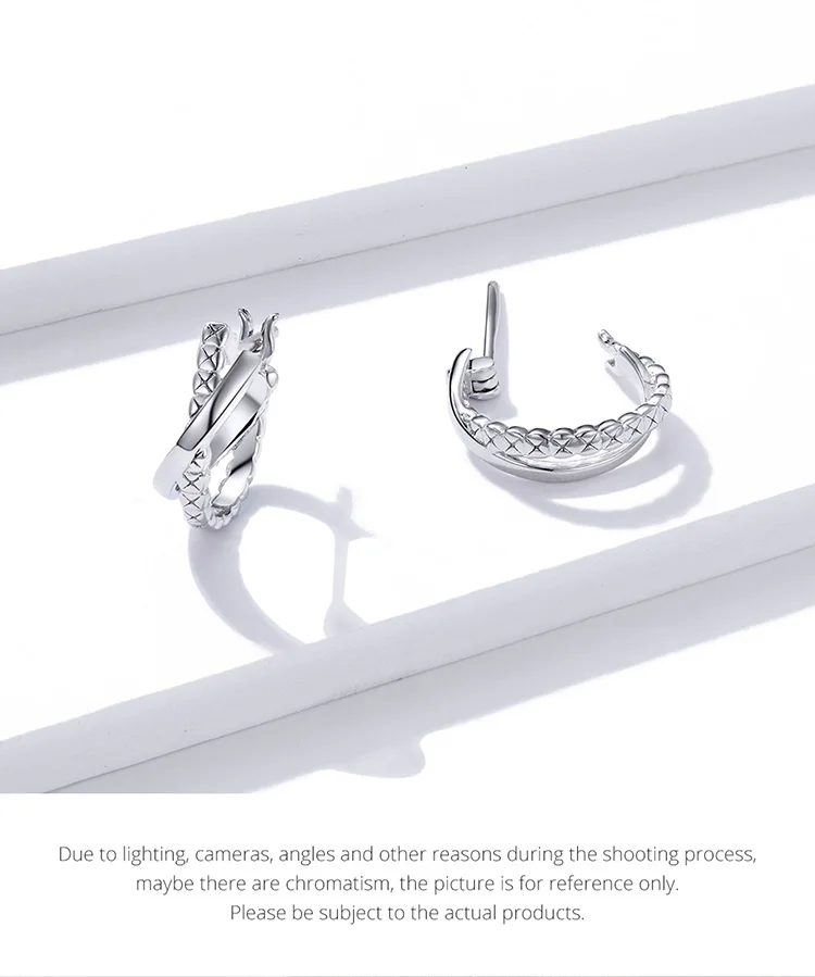 Материал: S925 + покрытая платиной Размер: 1,3*0,4 см Описание: Простой дизайн в сочетании с кожаной текстурой подчеркивает индивидуальность ваших ушей.