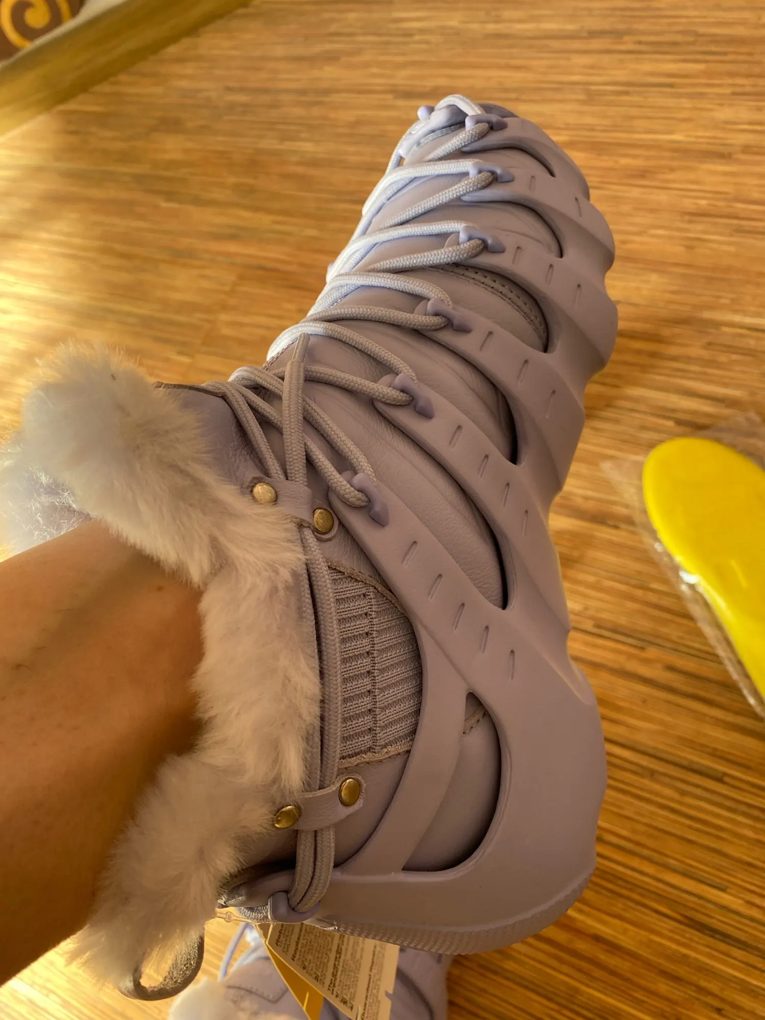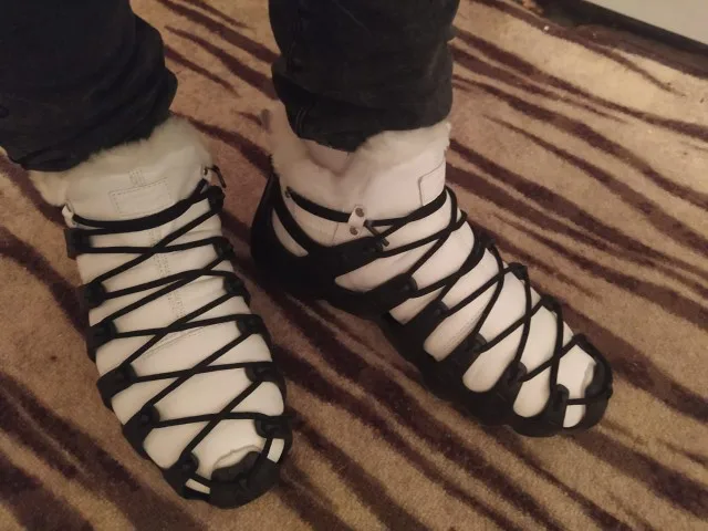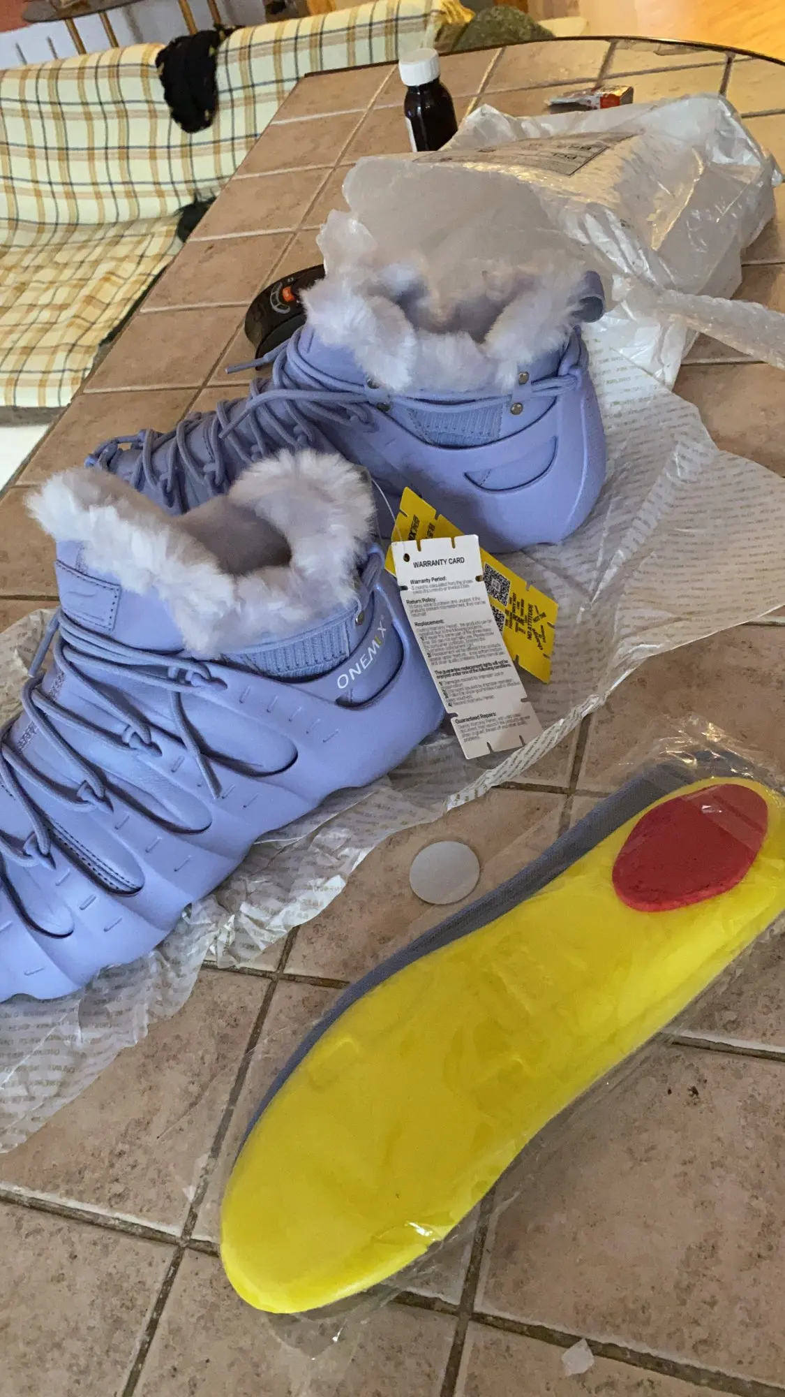 Отличные зимние кроссовки. Покупаю такие уже вторую пару. В том году относила такие же бежевые. Эти купила под цвет пуховика. Очень комфортные. Тёплые. И что удивительно, в зиму не скользят. Хотя подошва вроде как пластик. В подарок как всегда носочки, шнурки и в этот раз дополнительные ( не меховые) стельки. Рекомендую.