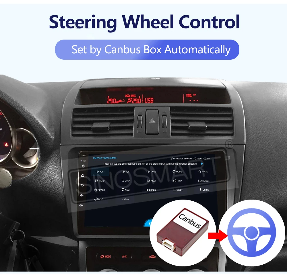 3. Он не может поддерживать вашу фабрику OEM обратную камеру.4. Перед версией подтяжки лица (рулевое колесо liek на следующем фото), вы не можете сбросить Среднее потребление и ограничение скорости после установки sinomart автомобильного плеера.