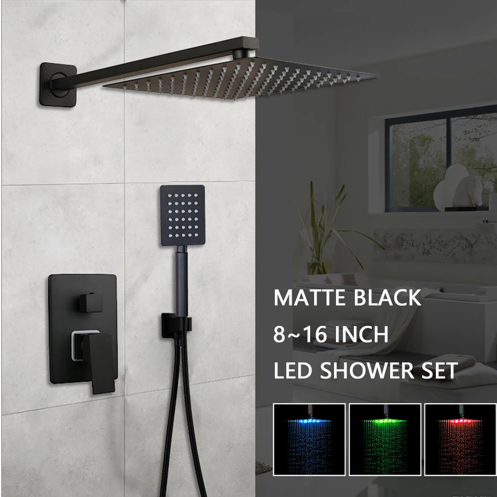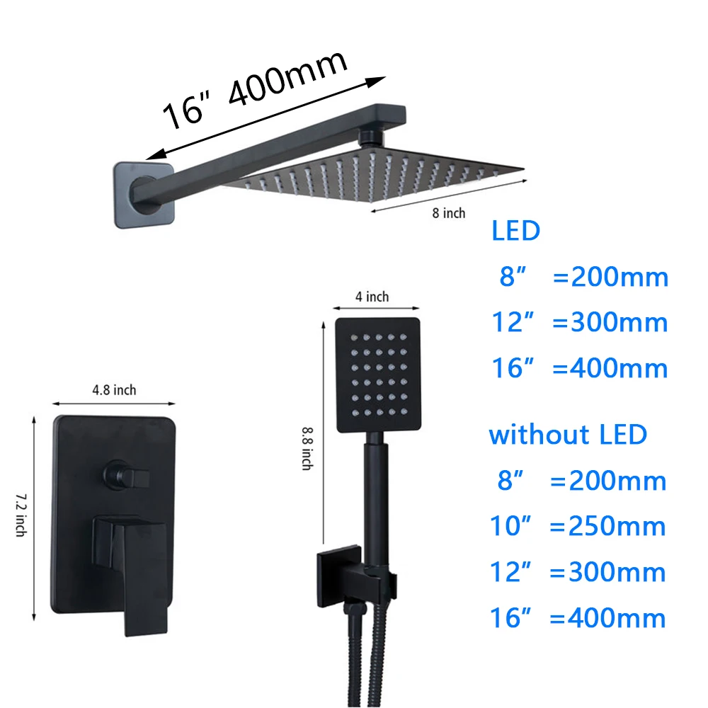 Насадка для душа черная, 81216 дюймов, со светодиодный кой