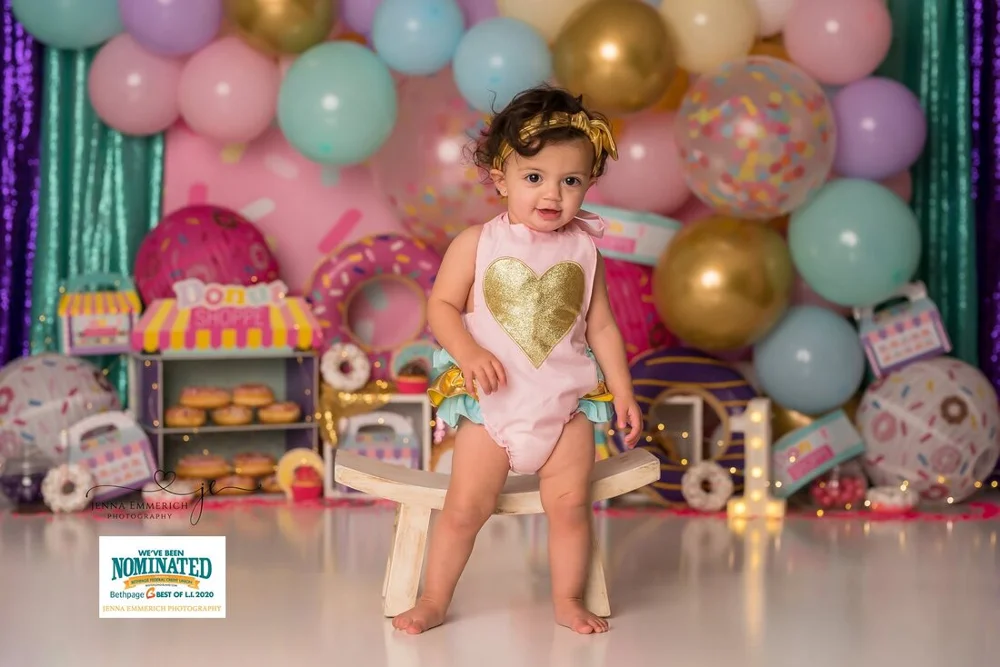 Mocsicka пончики девушка 1st день рождения фотографии фоны красочные занавески воздушный шар Декор торт разбивать фоны для фотостудии