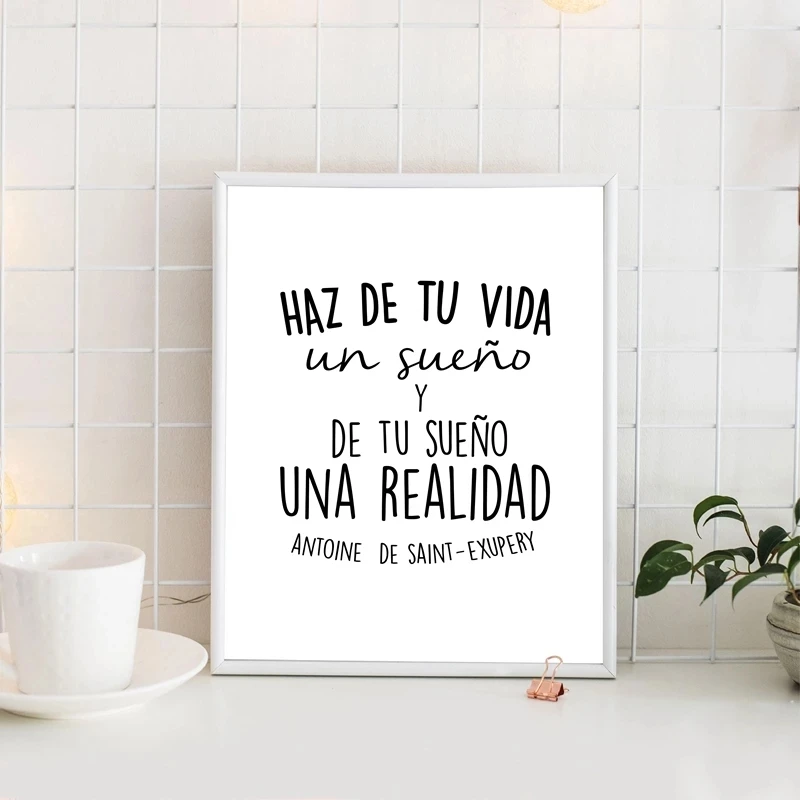 Плакат с испанской позитивной цитатурой, современный декор, картина для интерьера, черно-белая Настенная картина для гостиной, украшение для дома
