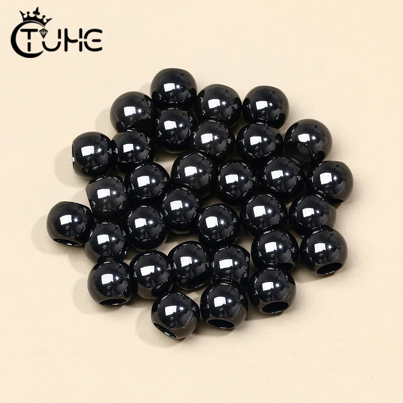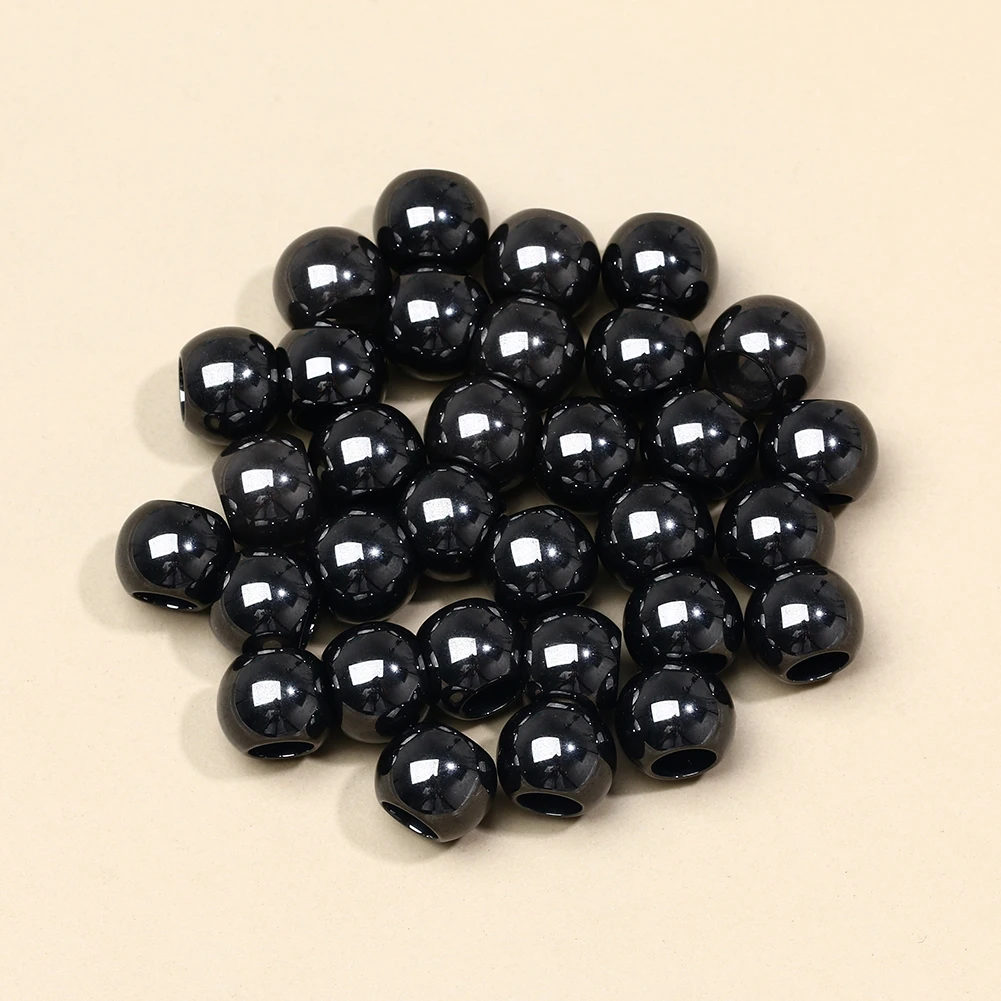 Бусины керамические круглые, черные, белые, розовые, россыпью, 7 шт.компл.