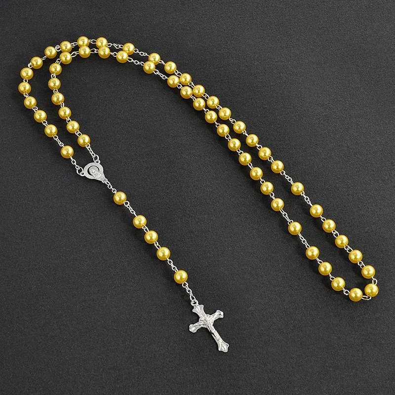 Религиозные 8 мм христианские стеклянные бусины Иисуса Христа Длинная подвеска крест Розария ожерелье