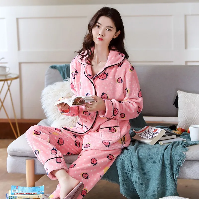 Пижама женская фланелевая, из 2 предметов, на флисе