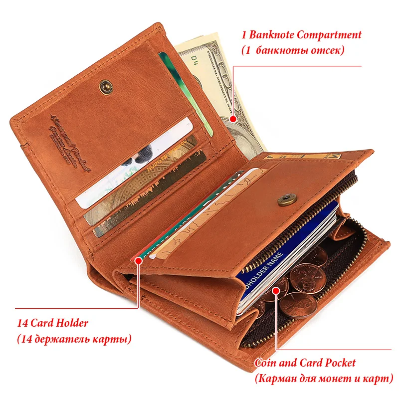 KAVIS мужские кошельки из 100% натуральной коровьей кожи с радиочас...