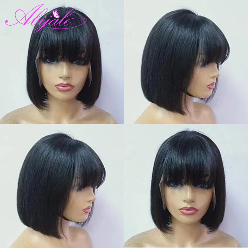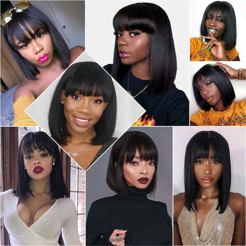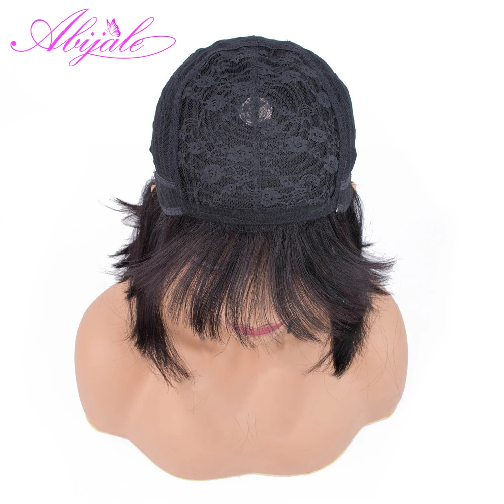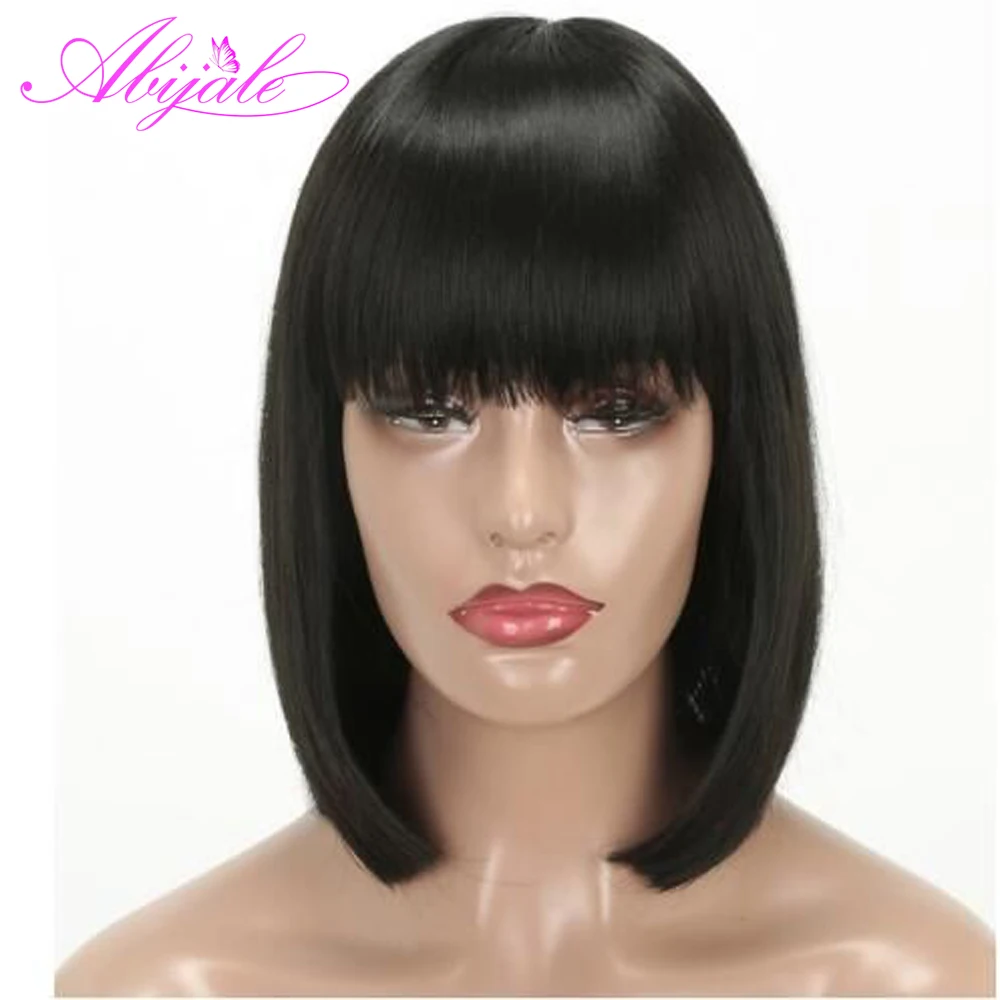 Парик Abijale с челкой, бразильский, прямой, короткий, для чернокожих женщин, среднего размера