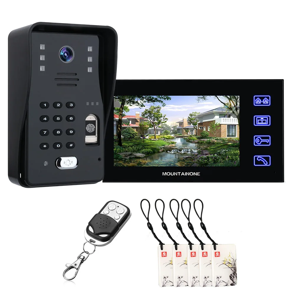 Видеодомофон, 7 дюймов, отпечаток пальца, RFID, пароль, домофон, дверной звонок с ночным видением, камера видеонаблюдения, домашнее наблюдение