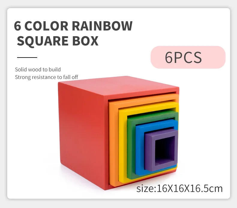 Детские деревянные игрушки, радужные штабелируемые блоки, геометрич...