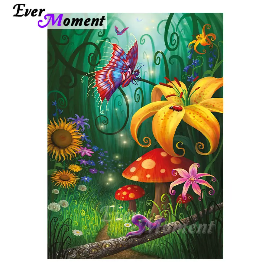 Алмазная живопись с мультяшным цветком, грибом, бабочкой, лесом, квадратные сверла для детей и взрослых, украшение ручной работы 4Y1178