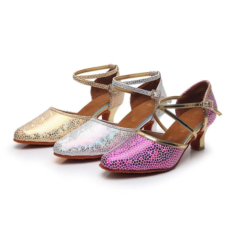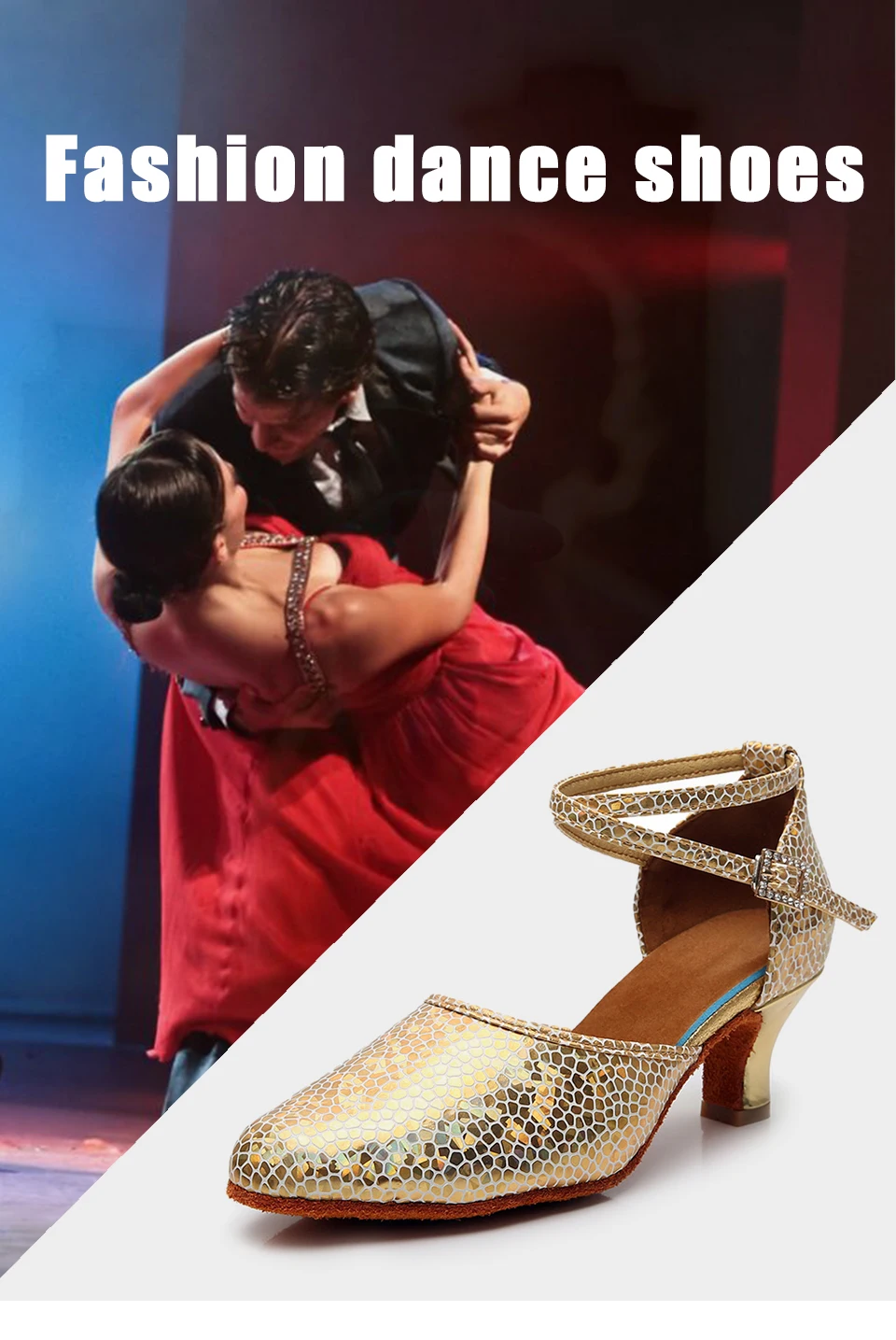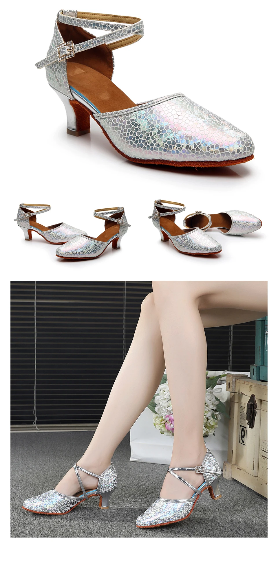 Танцевальная обувь для бальных танцев; Обувь для латинских танцев для женщин; Женская обувь для танго; Современная танцевальная обувь с закрытым носком; Сандалии для сальсы; Цвет золотой, серебряный