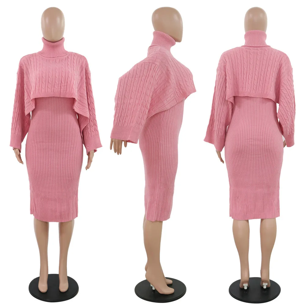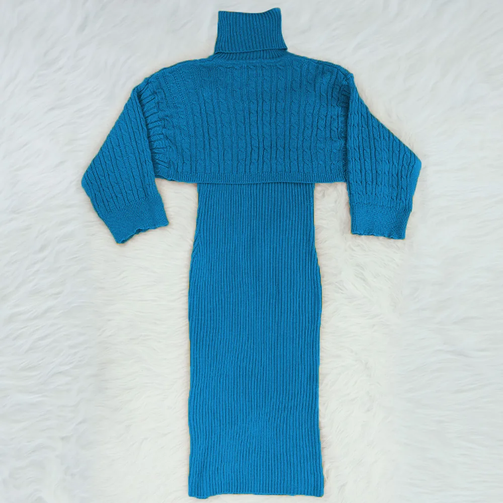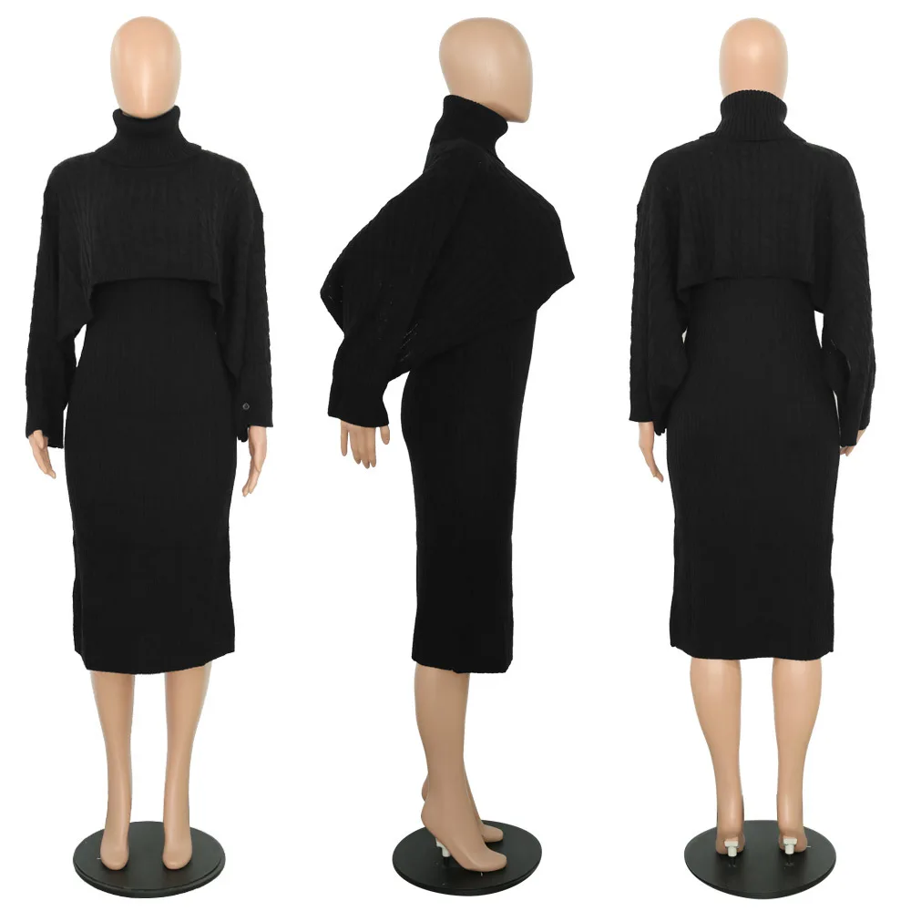 Женский зимний комплект из 2 предметов, свитер с высоким воротником и длинное платье-свитер без рукавов, осень 2020