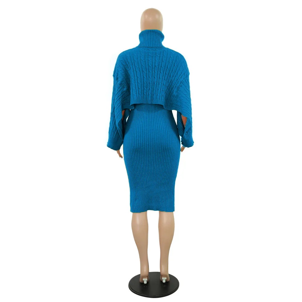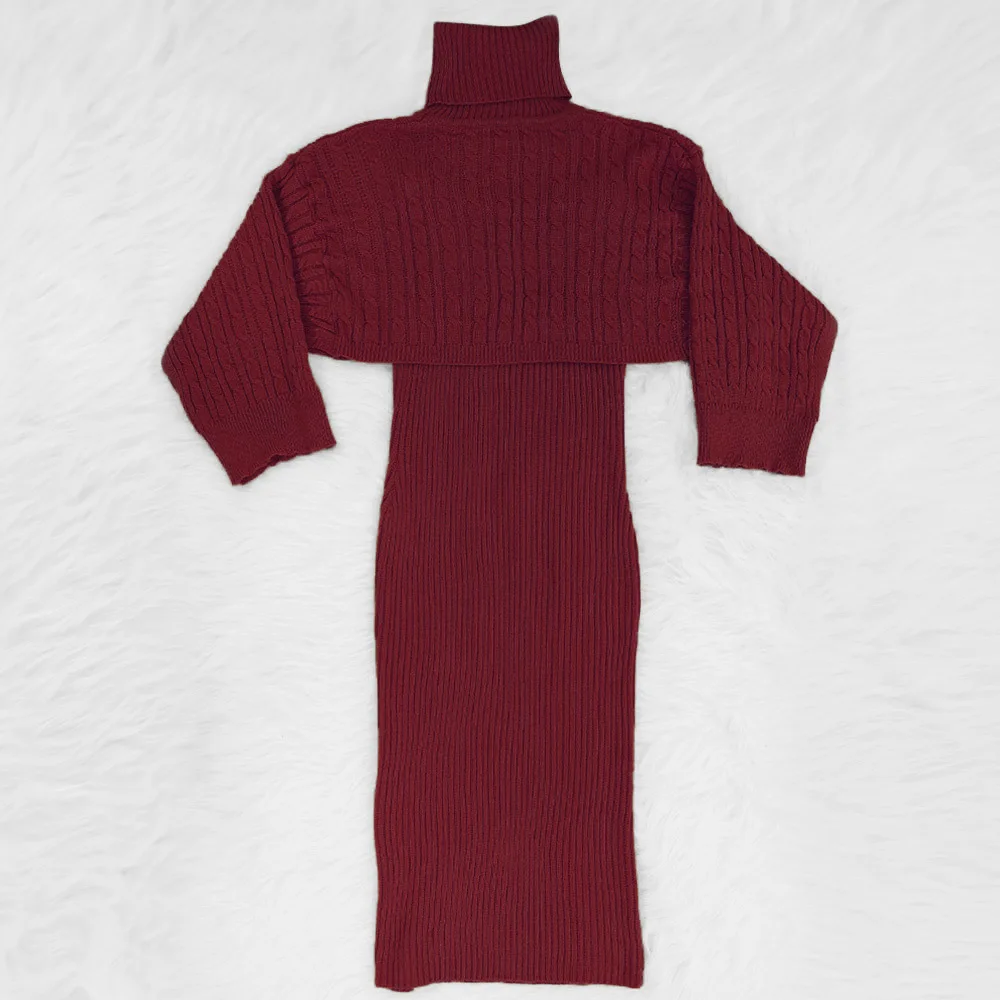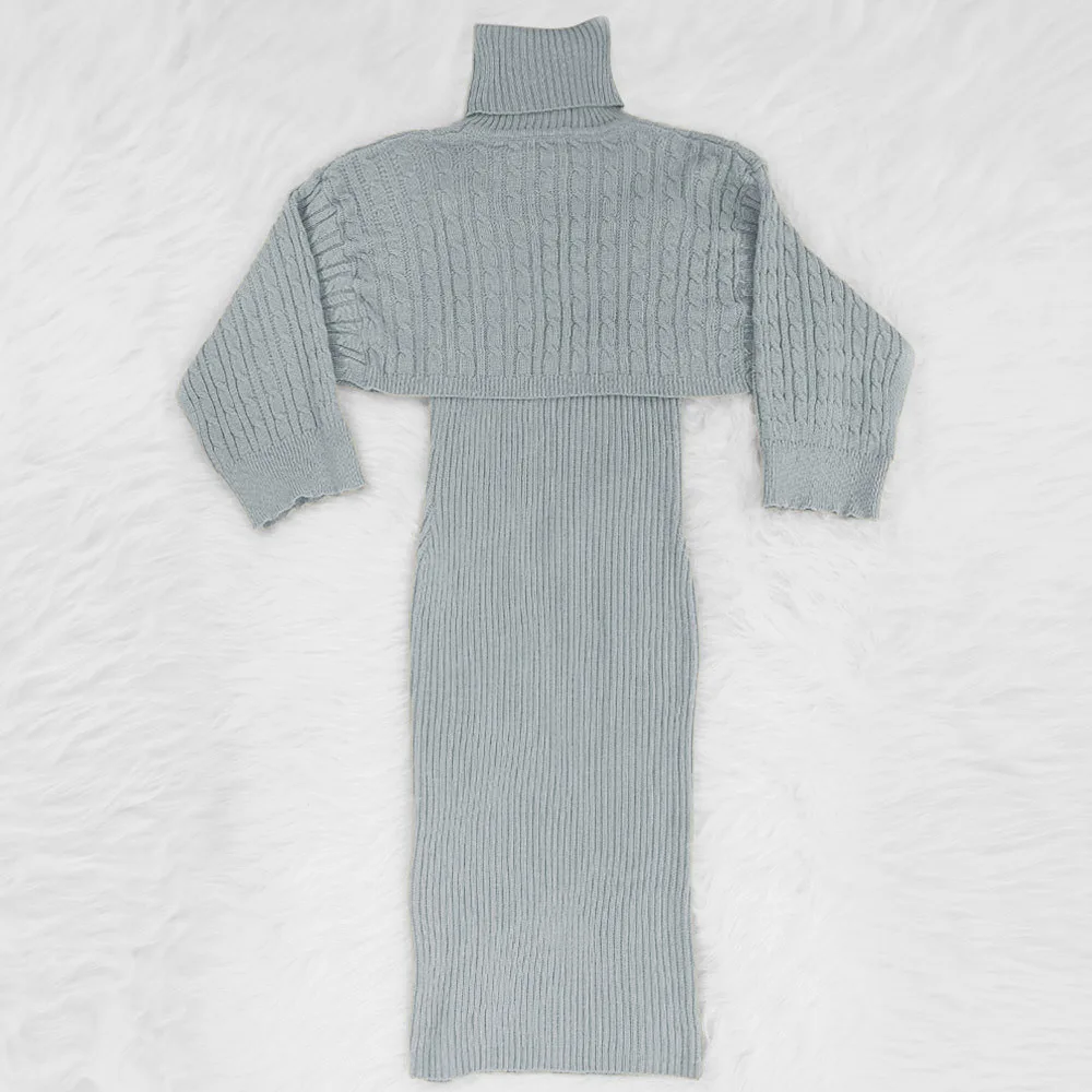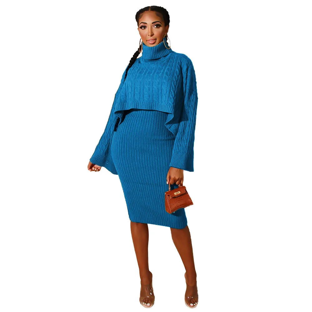 Женский зимний комплект из 2 предметов, свитер с высоким воротником и длинное платье-свитер без рукавов, осень 2020