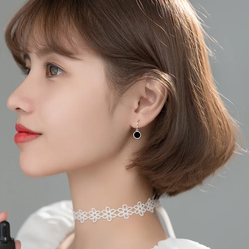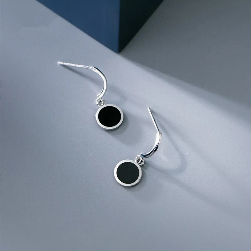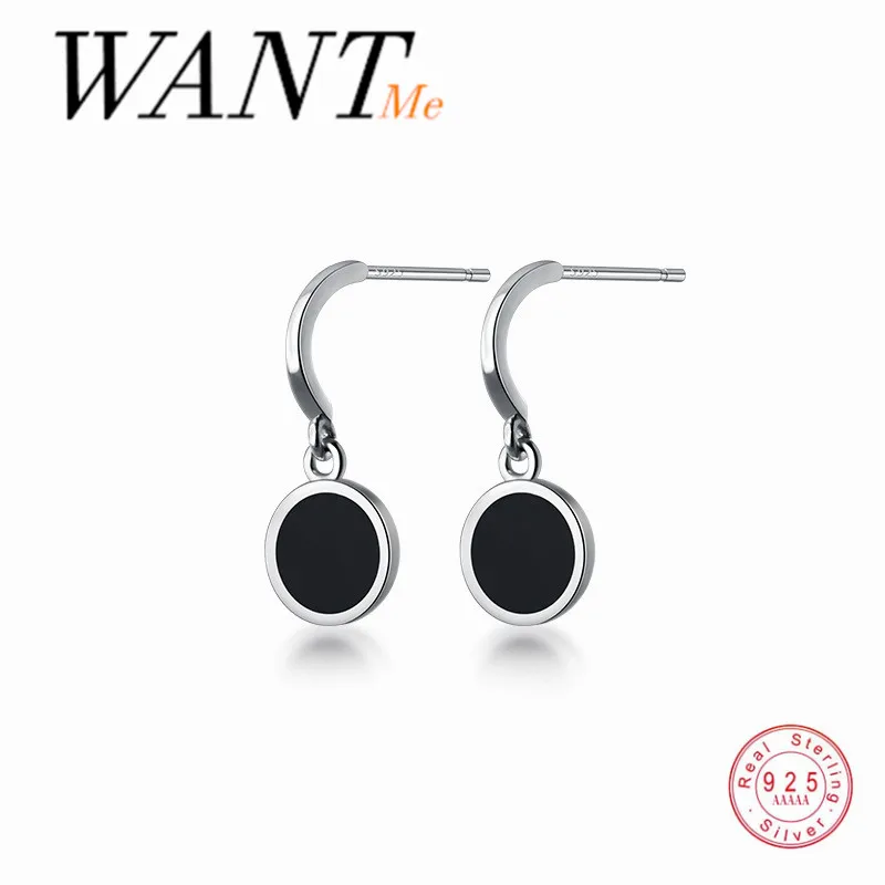 Женские Геометрические круглые черные серьги-гвоздики WANTME, корейские элегантные офисные серьги из подлинного серебра 925 пробы