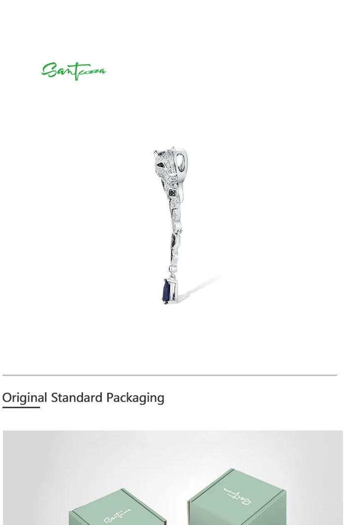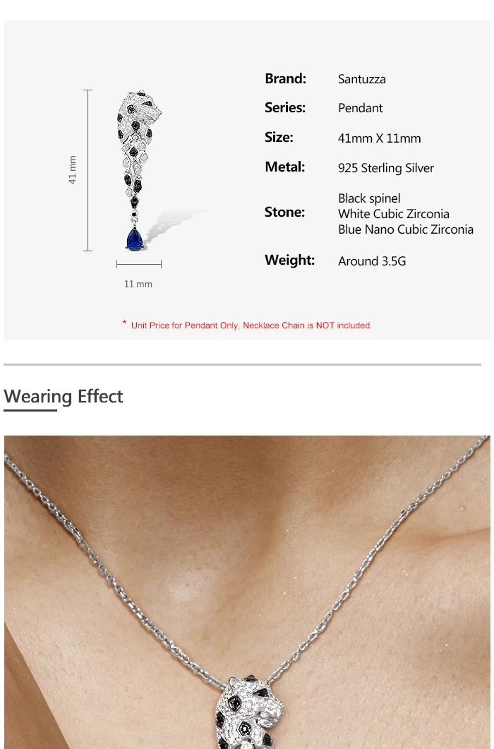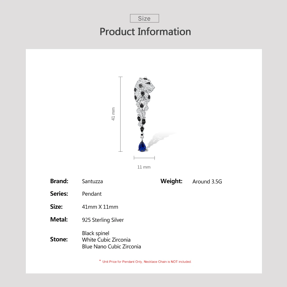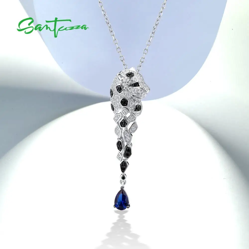 Женская серебряная подвеска SANTUZZA, из серебра 925 пробы с леопардовой пантерой, со сверкающей черной шпинелью, модные ювелирные украшения из драгоценных камней