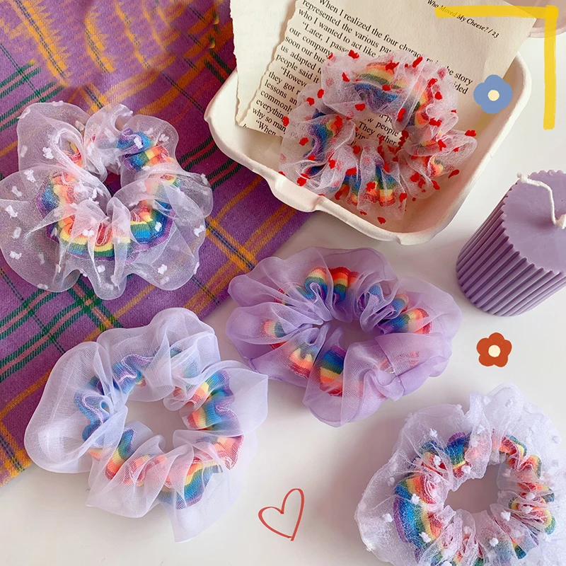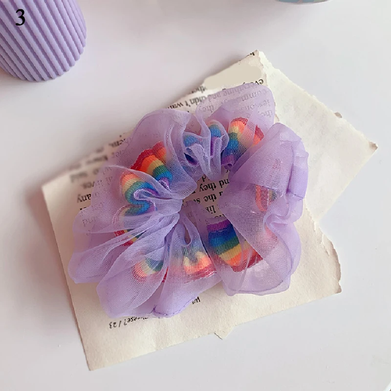 Резинка для волос в горошек с радужными звездами, эластичная сетчат...
