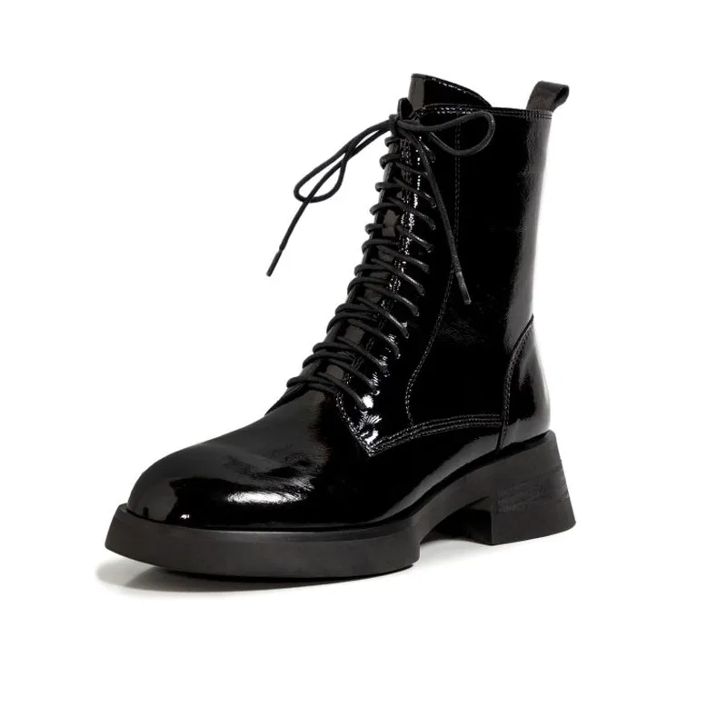 Ботинки женские весенне-летние из лакированной кожи, на толстой под...
