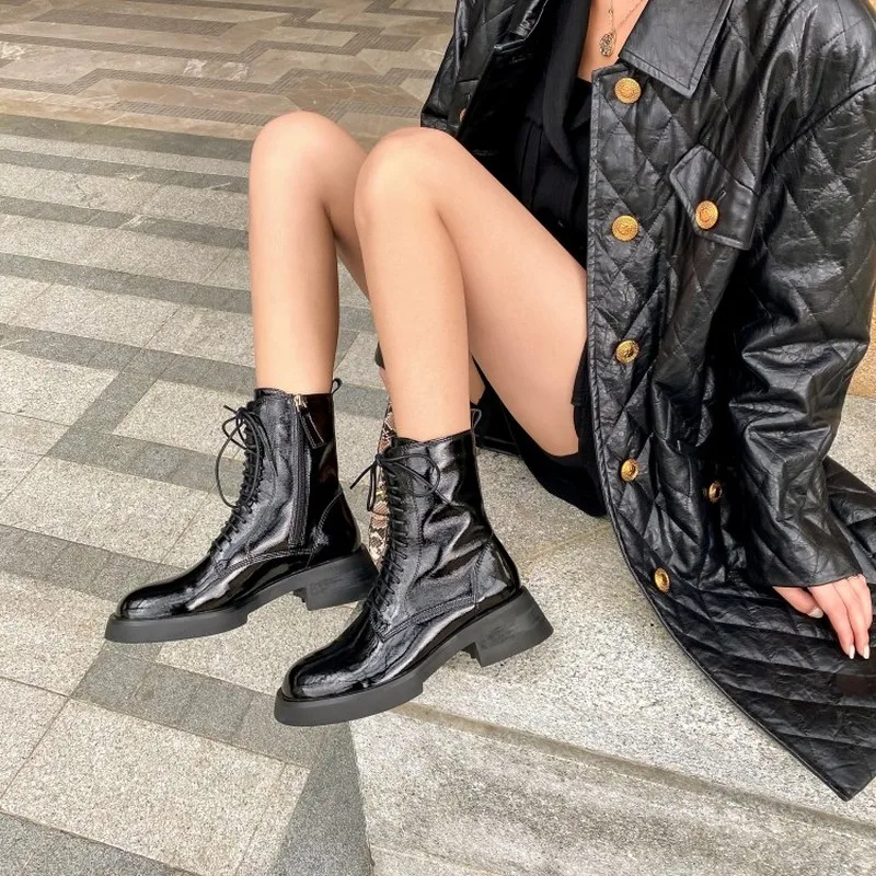 Женские ботинки из натуральной кожи; Ботильоны на массивном каблуке; Botas Mujer; Женские короткие ботинки на шнуровке; Ковбойские ботинки на молнии сбоку; Обувь на платформе