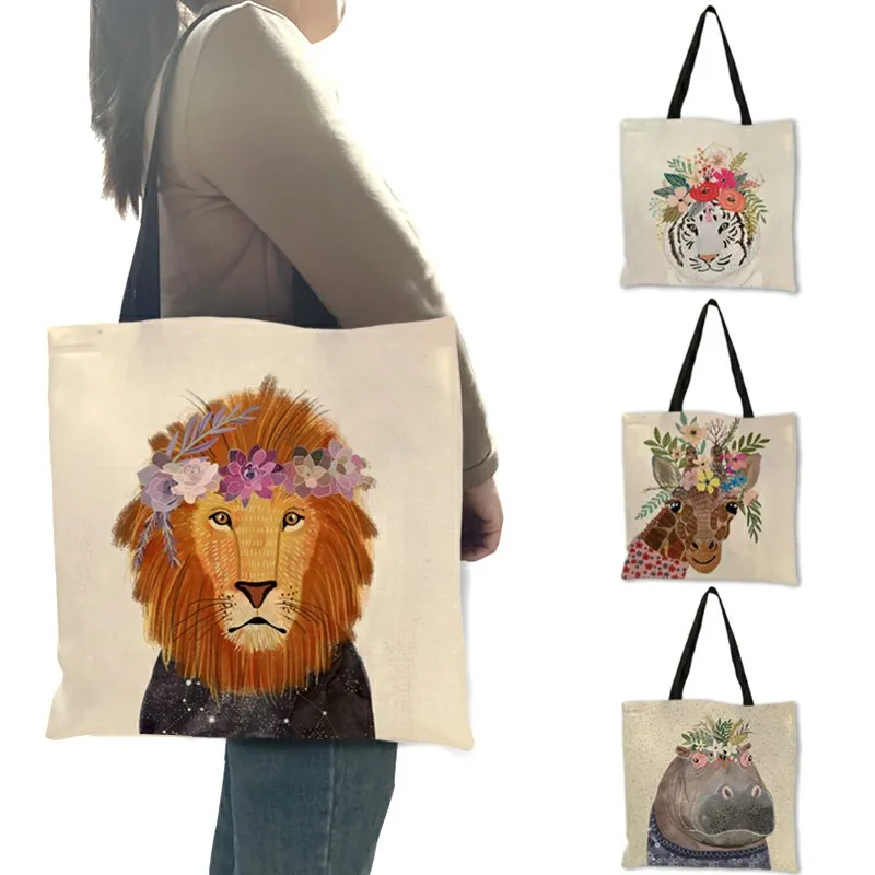 Милая цветочная гирлянда с животным принтом, женская сумка через плечо С Рисунком Тигра коалы, женская сумка-шоппер B13093