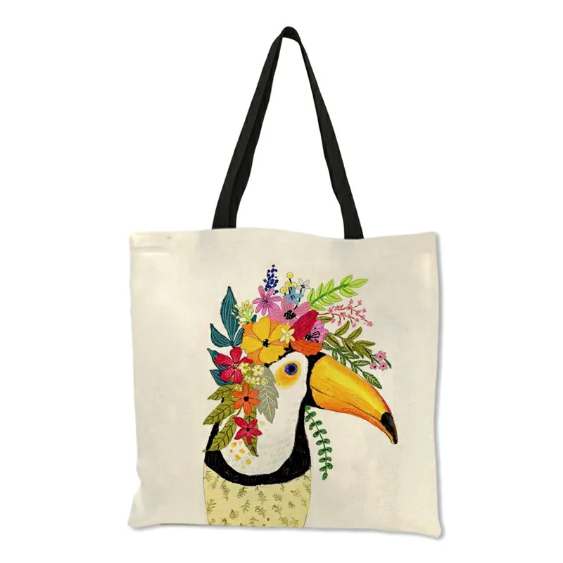 Сумка-тоут с акварельным рисунком животных, Повседневная льняная пр...
