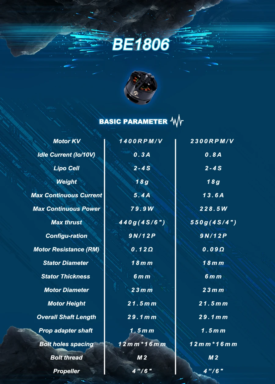 Многовинтовой бесщеточный двигатель Flashhobby BE1806 1806 14002300...