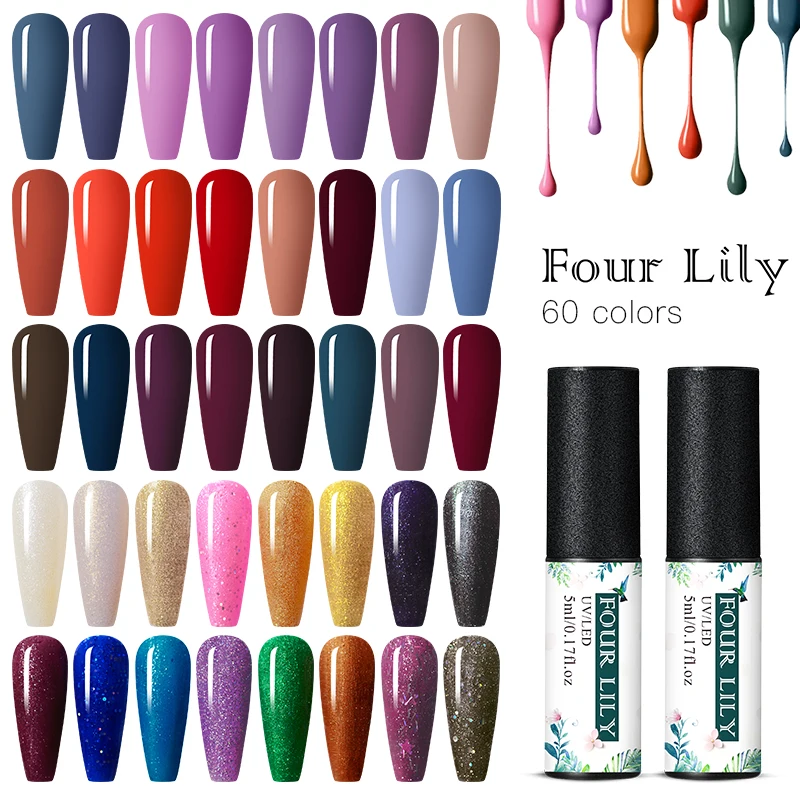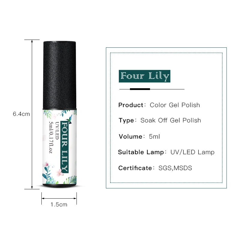 Матовый верхний слой Four Lily цветной УФ-гель для ногтей Блестящий Гель-лак Полупостоянный отмачиваемый УФ-гель лак сделай сам гель для дизайна ногтей