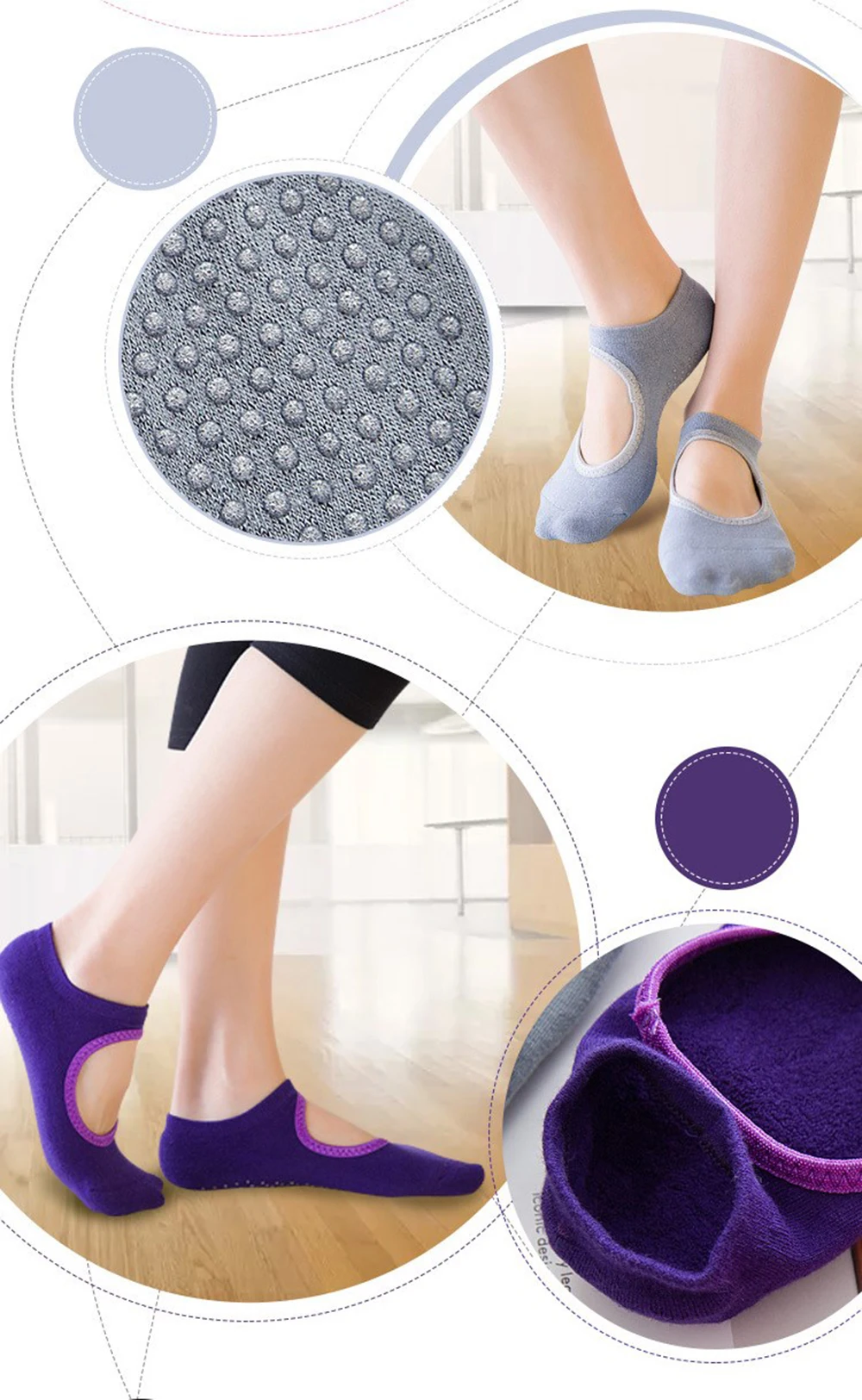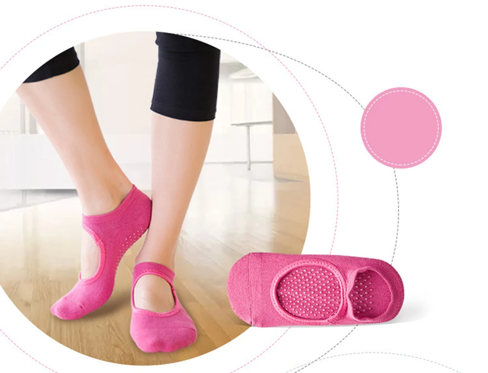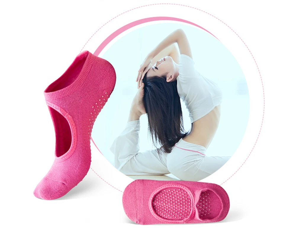 Женские спортивные носки для занятий фитнесом, йогой, топ для занятия танцами Пилатес, спортивные носки из чесаного хлопка, Нескользящие силиконовые носки с открытой спиной, тапочки, короткие носки, calcetines