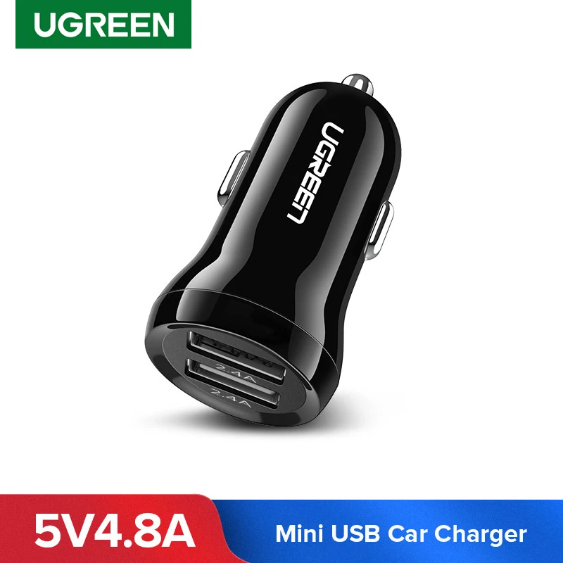 Автомобильное зарядное устройство Ugreen, с двумя USB-портами 4,8 А, мини-автомобильный адаптер зарядного устройства для телефона, автомобильные аксессуары, быстрая зарядка