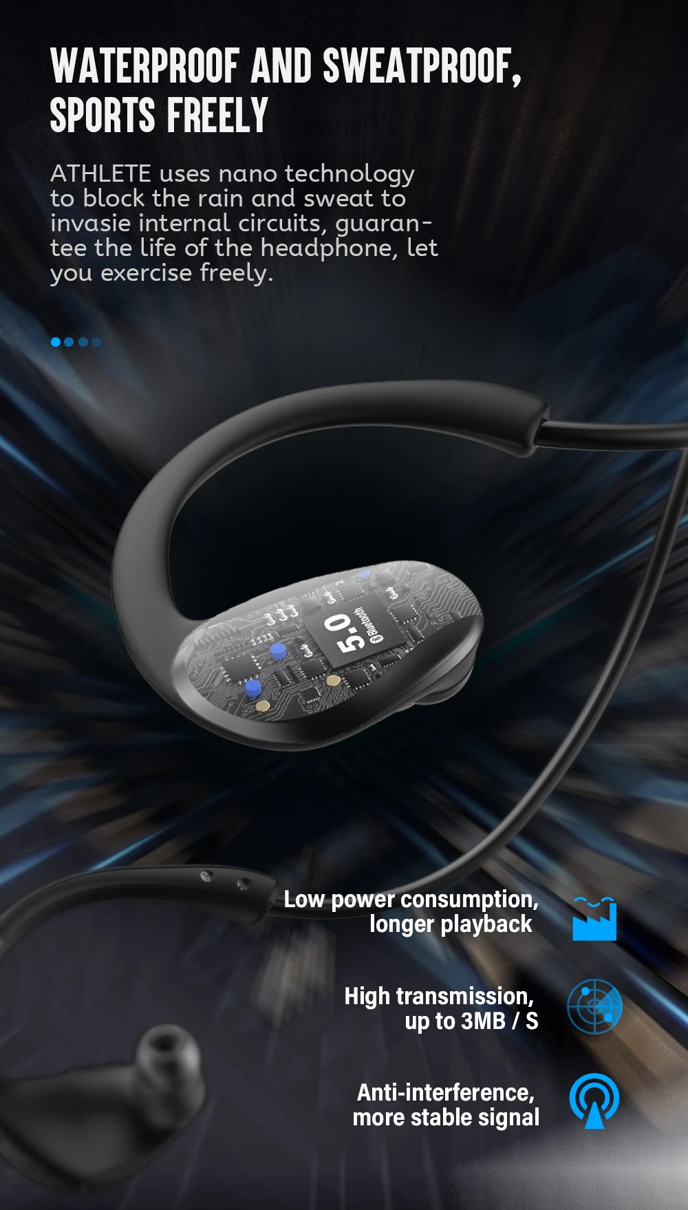 Спортивные Беспроводные Bluetooth-наушники DACOM ATHLETE IPX7, водо...