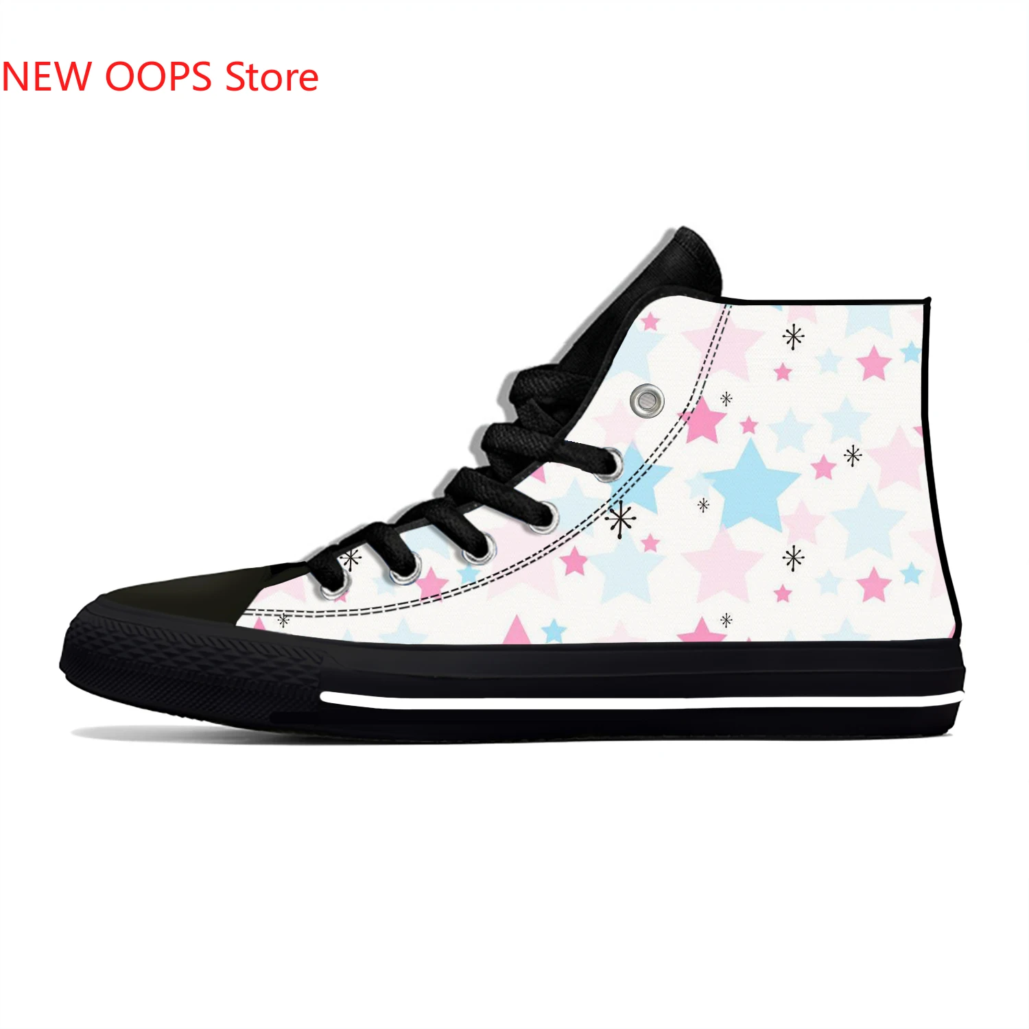 Блестящие яркие пастельные кроссовки со звездами, модные легкие высокие холщовые туфли, повседневные дышащие кроссовки для мужчин и женщин