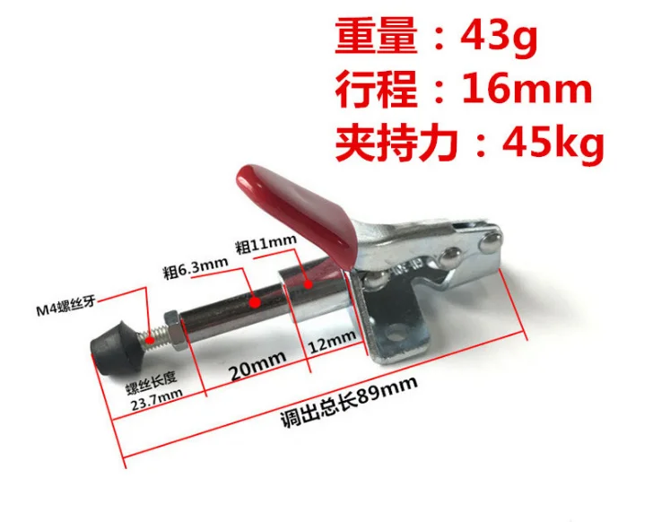 Пластиковая ручка крышки для легкой, безопасной и удобной работы 50 кг металлический горизонтальный тумблер Боковое крепление фиксатор тумблер, короткий бар, фланцевое основание Во время зажима рычаг контролируется, чтобы предотвратить воздействие на работу из-за боковой тяги С резиновой крышкой шпинделя наиболее подходит для быстрого удержания листового металла или печатных плат, для работы в машине, сварки, прессформы, сборки электронного оборудования и т. д.